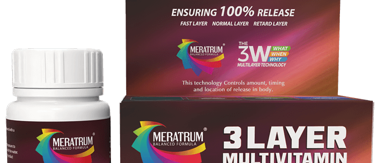 Often, a big number of supplemented vitamins is wasted in non-optimized delivery and absorption sites. This is why we developed Meratrum 3 LAYER, guaranteeing optimal bioavailability in one tablet offering improved performance and stability.